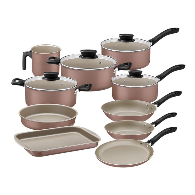 - Assadeira Rasa 2L, Assadeira Redonda 1,7L, Caçarola 2L, Caçarola 2,8L, Fervedor 1,1L, Frigideira 0,4L, Frigideira 0,8L, Panela 0,8L, Panela 1,4L, Panquequeira/ Tapioqueira 0,6L