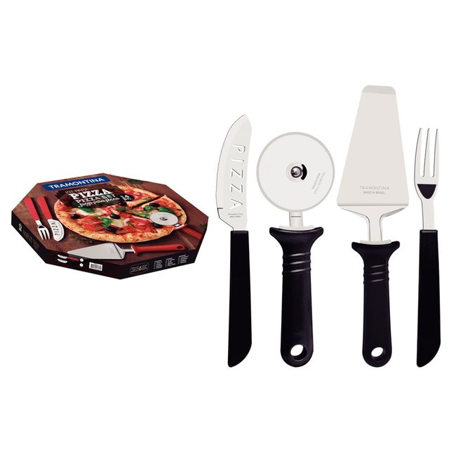 Se você busca o jogo de talheres ideal para elevar a noite de pizza em família, o Jogo de Talheres 14 Peças Tramontina Pizza 25099022 Preto é a escolha ideal. Seus itens altamente duráveis produzidos em aço inox, garantem beleza, resistência e conforto no uso. Os cabos de polipropileno na cor preta vibrante garantem um ar mais animado para sua casa. Qualidade que vai te surpreender!