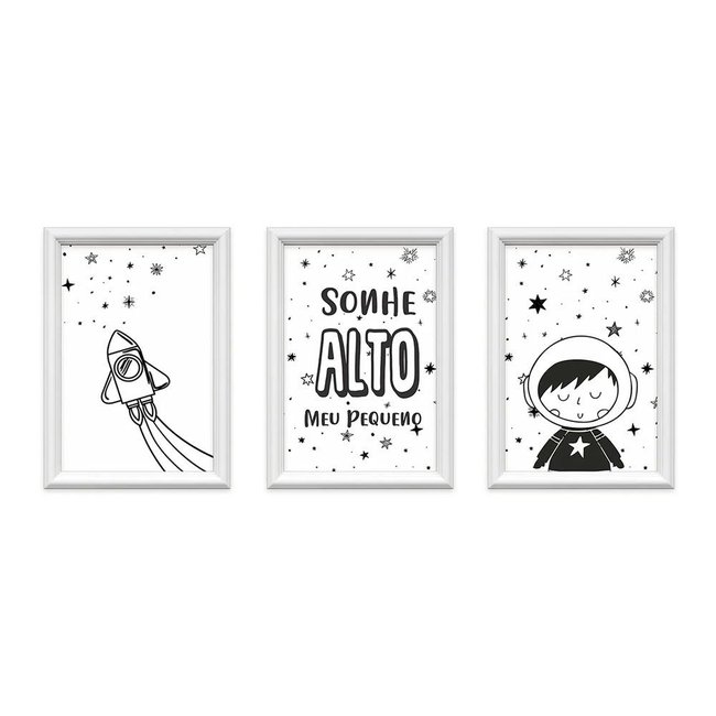 Kit 3 Quadros Decorativos Meu Rodapé Astronauta 24x34.