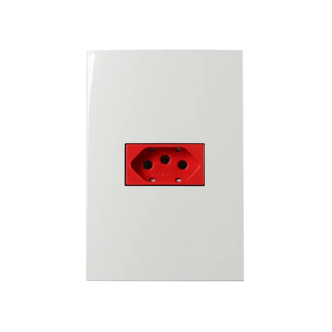 - 1 Tomada MarGirius Sleek 2P+T 20A Vermelha com Placa e Suporte 4x2 Branca